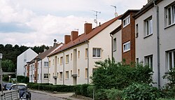 | Seehaussiedlung Wohnungsbaugenossenschaft (WBG) Aufbau eG Strausberg - denkmalgerecht wärmegedämmtes Haus aus den 50er Jahren in Strausberg Nord Nähe Wriezener Straße | Eigenes Werk | Molgreen | Datei:20140809 xl wbg-aufbau.de-strausberg-seehaussiedlung8489.JPG | |