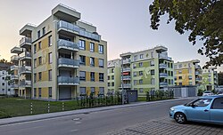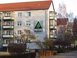 | Gustav-Kurtze-Wohnpark Wohnungsbaugenossenschaft (WBG) Aufbau eG Strausberg - wärmegedämmtes Haus aus den 60er Jahren in Strausberg Vorstadt | Eigenes Werk | Molgreen | Datei:20140103 xl wbg-aufbau.de-strausberg-gkp-5732.JPG | |