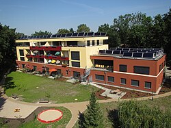 | Sonnenhaus der Wohnungsbaugenossenschaft "Aufbau" Strausberg eG - erbaut 2014 - Wohnhaus und Geschäftstselle | Eigenes Werk | Molgreen | Datei:20140719-0958 xl sonnenhaus-wbg-aufbau.de-strausberg7026.JPG | |
