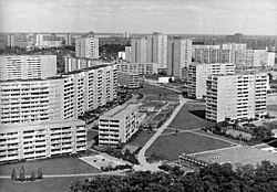 Von 1951 bis 1970 wurden rund 111.000 Wohnungen im Rahmen des Wiederaufbaus nach dem Zweiten Weltkrieg neu gebaut, z. B. auch in neuen Städten wie in Eisenhüttenstadt oder Hoyerswerda. 1970 war der Bestand der Wohnungen auf 5,9 Millionen angestiegen. Bei etwa 17 Millionen Einwohnern der DDR entsprach das ca. 345 Wohnungen je 1000 Einwohnern.[3]