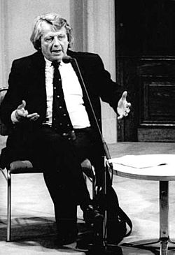 Wolfgang Leonhard (* 16. April 1921 in Wien als Wladimir Leonhard (seit 1945 trug er den Vornamen Wolfgang); † 17. August 2014 in Daun[1]) war ein deutscher Historiker und Publizist. Seine Mutter Susanne Leonhard emigrierte 1935 auf der Flucht vor den Nationalsozialisten mit ihm in die Sowjetunion, wo sie ein Jahr später im Verlauf von Josef Stalins Terrorkampagne verhaftet und zu zwölf Jahren Arbeitslager in Sibirien verurteilt wurde. Der junge Wladimir blieb in Moskau, besuchte als Internat geführte Kaderschulen und wurde zum Kommunisten erzogen. Im April 1945 wurde er mit der Gruppe Ulbricht in die Sowjetische Besatzungszone in Ostdeutschland geflogen, wo er sich mit der stalinistischen SED überwarf und daraufhin nach Jugoslawien flüchtete. Von dort ging er in die Bundesrepublik Deutschland und veröffentlichte dort 1955 das Buch Die Revolution entläßt ihre Kinder über seine Erlebnisse. Er studierte und wurde Professor für Geschichte in den USA. Leonhard galt als einer der führenden Kenner der Sowjetunion, der DDR und des Kommunismus. Von 1968 bis zu seinem Tod war er Mitglied des PEN-Zentrums Deutschland. Seinen Lebensabend verbrachte er in Manderscheid in der Eifel.