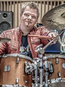 | Wolfgang Lindner jr. Schlagzeuger Musikproduzent Verleger | Privatsammlung institution QS:P195,Q768717 | Hans Eder | Datei:Wolfgang Lindner jr. on Drums.jpg |