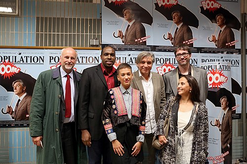 Wolfgang Lutz , Obadias Ndaba , Gianna Charles , Werner Boote , Myriam Loukili und Markus Glaser bei der Wien-Premiere von Bootes Dokumentarfilm Population Boom im Gartenbaukino in Wien . | Eigenes Werk | Manfred Werner - Tsui | Datei:Population Boom Wien-Premiere 2013 04 Wolfgang Lutz Obadias Ndaba Gianna Charles Werner Boote Myriam Loukili Markus Glaser.jpg |