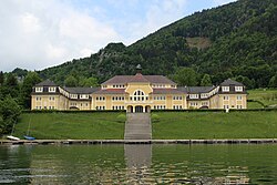 Frontalansicht des Ferienhortes bei Ried am Wolfgangsee. Vom See aus aufgenommen. | Eigenes Werk | HagenF01 | Datei:Ferienhort (Ried am Wolfgangsee).JPG | |