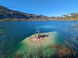 Metzgerinsel mit Ochsenkreuz, Wolfgangsee, St. Gilgen, Österreich | Eigenes Werk | Tigerente | Datei:Metzgerinsel mit Ochsenkreuz Wolfgangsee 20231101a.jpg |