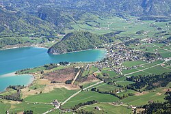 Luftbild des Wolfgangsees (Ansicht von Südosten) mit Schafberg , Spinnerin und Sommeraustein. | Eigenes Werk | Carsten Steger | Datei:Aerial image of the Wolfgangsee (view from the southeast).jpg | |