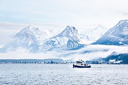 Das Salzkammergut genießt einen hohen Bekanntheitsgrad als Tourismus- und Erholungsgebiet und hat diesbezüglich seit jeher eine große Bedeutung. Ab der zweiten Hälfte des 19. Jahrhunderts lebten viele wohlhabende Familien während der Sommermonate im Salzkammergut. Ab 1853 verbrachte Kaiser Franz Joseph I. die Sommerfrische in Bad Ischl. Mit der Niederlassung des Adels zog das Salzkammergut immer mehr Schriftsteller, Maler und Musiker an.[30] Im 20. Jahrhundert etablierte sich vor allem St. Wolfgang als Ferienort von Reichen. Prominente wie Ira von Fürstenberg, Karim Aga Khan IV. und Gunter Sachs besuchten den Wolfgangsee und verbrachten dort die Sommermonate.[31] Als Urlaubsort des früheren deutschen Bundeskanzlers Helmut Kohl erlangte St. Gilgen überregionale Bekanntheit. Kohl verbrachte über 30 Jahre lang seine Sommerurlaube stets am Wolfgangsee.[32]