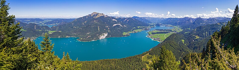 Blick vom Bürgl über den Wolfgangsee, St. Wolfgang, Österreich. Die milchig-türkise Färbung des Sees im Sommer ist eine Folge biogener Entkalkung | Eigenes Werk | Tigerente | Datei:Biogene Entkalkung Wolfgangsee 20230814a.jpg | |