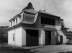 | Fertiggestelltes Feuerwehrhaus Wolfsgraben im Jahr 1931 | Feuerwehrchronik | Anton Achatz | Datei:Löschgerätehausweihe 1931.jpg | |