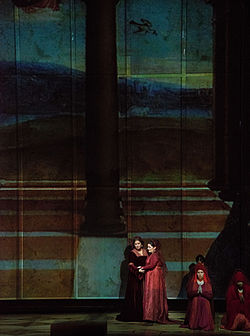 | Il trovatore, Salzburg Festival 2014, with Anna Netrebko (Leonora), Diana Haller (Ines) and the Chorus of the Vienna State Opera | Eigenes Werk | Christian Michelides | Datei:Trovatore 6824 Michelides.jpg | |