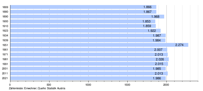 Die Einwohnerzahl ist seit 1961 konstant bei rund 2000 Personen.[3]