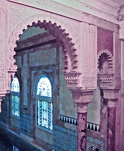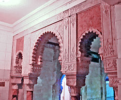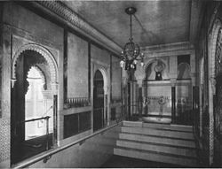 | Architectural detail in the Central Bathhouse Vienna designed by the Czada brothers in the Moorish Revival style | Diese Datei wurde von diesem Werk abgeleitet: Czada1.jpg : | Czada1.jpg : Moorish Revival derivative work: James Steakley | Datei:Central Bathhouse Vienna archway.jpg | |