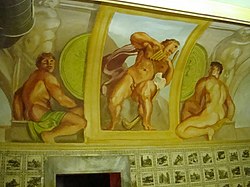 Seit der Renovierung in den 1990er-Jahren weisen die Räumlichkeiten des Bades freizügige Wand- und Deckenmalereien des Künstlers und Bühnenbildners Stefan Riedl auf.[43] Teilweise sind sie von berühmten Gemälden oder auch bekannten Mythen (etwa Zeus und Ganymed) inspiriert,[44] wie etwa die von ihm ausgestaltete „Römische Grotte“ (mit Lararium und Nymphaeum).[45] Die Decke des heute zu einem Tempel umgestalteten Saales des früheren Kalten Bassins im Herrenbad, das erst seit 1999 wieder zugänglich ist, zeigt Merkmale des Jugendstils. Das dort bis in die 1970er Jahre benutzbare Wasserbecken ist noch erhalten, wurde aber abgedeckt.[46]