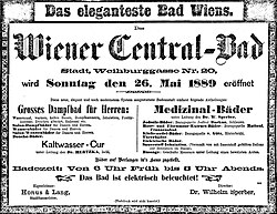 - ↑ Das eleganteste Bad Wiens. Das Wiener Central-Bad, Stadt, Weihburggasse Nr. 20, wird Sonntag, den 26. d. M. eröffnet.. In: Neue Freie Presse, Morgenblatt, 25. Mai 1889, S. 14 (online bei ANNO).