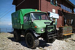 | Hütteneigener Unimog beim Zirbitzkogel Schutzhaus | Eigenes Werk | Clemens Stockner | Datei:Zirbitz-Trans 01.jpg | |