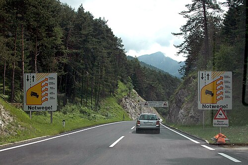 - ↑ Verordnungen Nr. 1365 und 1366 über Fahrverbote auf der B177 Seefelder Straße, im Bote für Tirol – Amtsblatt der Behörden, Ämter und Gerichte Tirols, Bl. 51/188, vom 19. Dezember 2007, auf tirol.gv.at (PDF; 128 kB), S. 606