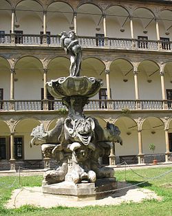 | Bacchus-Brunnen im Arkadenhof von Schloss Bučovice | Selbst fotografiert | Helmuth Furch | Datei:Bacchus-Brunnen.jpg | |