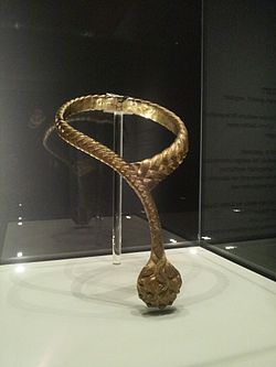 | Zopforden, einer der ältesten, jedoch nicht mehr existierenden, Orden Österreichs. Dieses Stück wurde um 1377 geschaffen und ist das einzig bekannte, noch existierende, Originalabzeichen des Ordens. Es ist in Silber getrieben, ziseliert, graviert und vergoldet. Der Reifen des Ordens kann über ein Scharnier geöffnet werden. Auf der Rückseite der Locke befindet sich eine Kapsel mit einem in Papier gefaltenen kastanienbraunen Haarbündel. Die Herkunft des Haarbündels ist unbekannt.Ausstellungsstück im Museum im Palais , Graz, Österreich | Eigenes Werk | Gugganij | Datei:Zopforden Museum im Palais Graz 20120930.jpg |