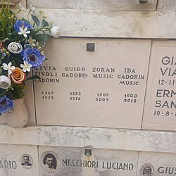 | Das Grab des slowenischen Künstlers Zoran Mušič und seiner Ehefrau Ida Cadorin auf dem Friedhof San Michele in Venedig. | Eigenes Werk | Harvey Kneeslapper | Datei:Grab Zoran Mušič.jpg | |