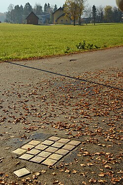 In den Jahren 2007 bis 2014 wurden an einer frequentierten Stelle auf der rechten Seite der Glan, im Stadtteil Leopoldskron-Moos, zum Gedenken an die 18 in Salzburg geborenen und in Auschwitz ermordeten Kinder „Stolpersteine“ verlegt.[13]