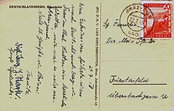 | Postkarte mit Stempel der Bahnpost Graz-Wies vom 22. 7. 1948, Briefmarke zu 20 Groschen der Zweiten Landschaftsausgabe , Austria-Netto-Katalog Nr. 851 orange | alte Ansichtskarte, für die Datei: Eigenes Werk | unbekannt, für die Datei: Josef Moser | Datei:Deutschlandsberg Bahnpost 1948.jpg | |
