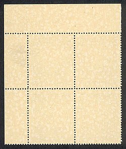 | Spargummierung 1945. Spargummi bei dem Wert zu 30 Groschen der österreichischen Landschaftsausgabe 1945 | Selbst fotografiert. | Nikolaus Rab (photographer). Original uploader was Peterwuttke at de.wikipedia | Datei:Spargummi.jpg |
