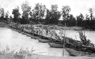 | Avstro-ogrski pantonski mostovi čez Piavo med bitko na reki Piavi. | This image is available from the Kamra portal under the reference number 10983 . This tag does not indicate the copyright status of the attached work. A normal copyright tag is still required. See Commons:Licensing for more information. | Autor/-in unbekannt Unknown author | Datei:Avstro-ogrski pantonski mostovi čez Piavo med bitko na reki Piavi.jpg | |