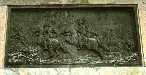 | Eins von vier Bronzereliefs mit General Hoches wichtigsten militärischen Erfolgen. Hier die Attacke auf die Weißenburger Linien im Elsaß am 26. Dezember 1793. Original von Louis Boizot. | Eigenes Werk | Dieter rogge | Datei:HocheW'burg.jpg |