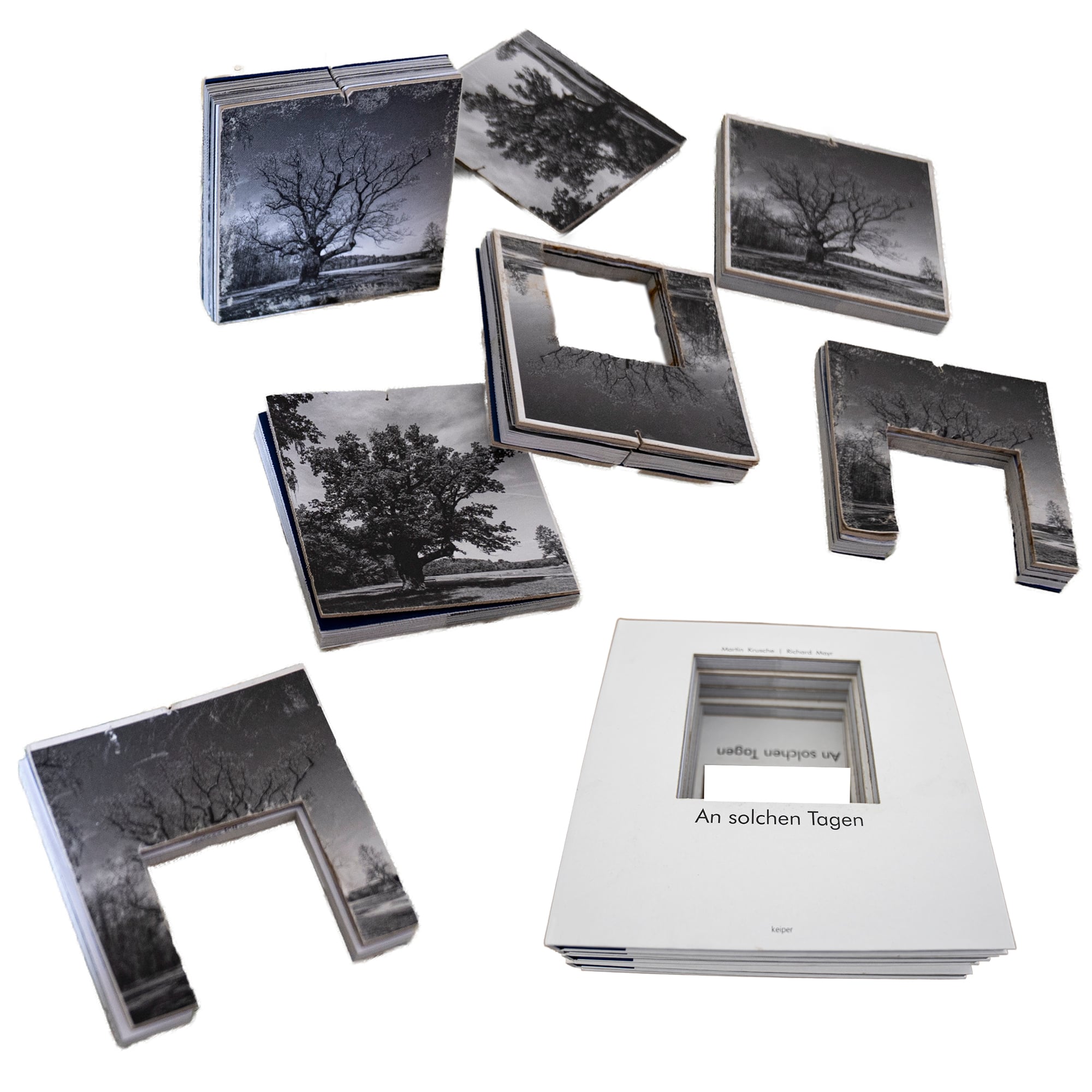 - Die drei Covers (Drei mal die gleiche Textsammlung, unterschiedliche Grafiken)