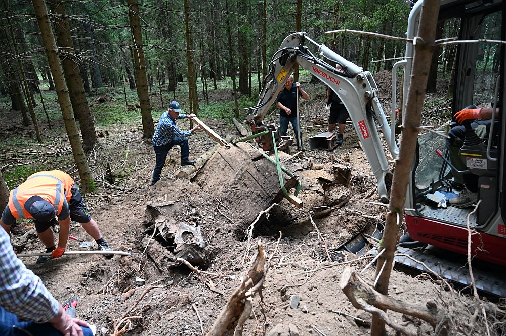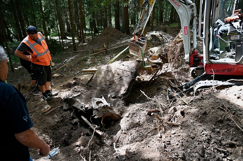 Nach der Bergung des Wracks wurde die Grube natürlich gefüllt und eingeebnet, auf das im Sinn des Wortes Gras über die Sache wachsen kann.