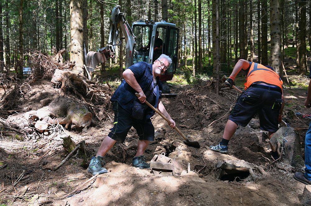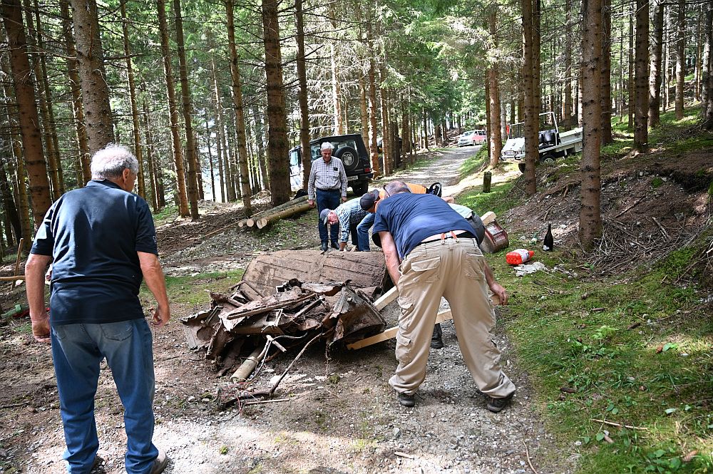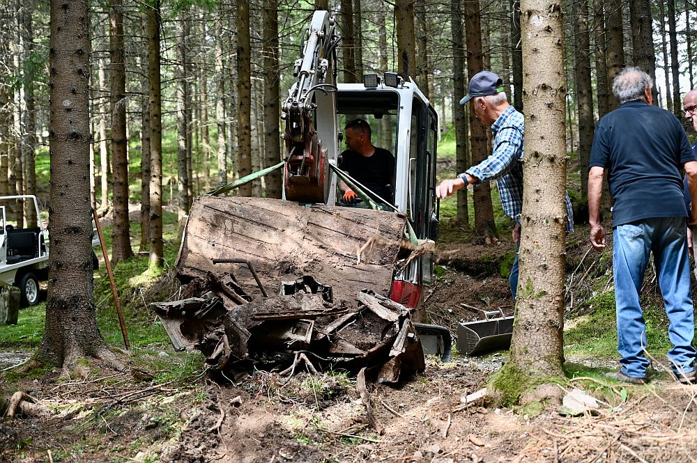 von Gerald PaungerDie Reste des Prototypen waren erst halb freigelegt, da begannen die Puch-Routiniers schon mit Erörterungen der Details, die daran erkennbar wurden. Da keine hinreichende Dokumentation verfügbar ist, muß hier eine Art der Wissensarchäologie angewandt werden. Das heißt, sachkundige Personen müssen Produktionsdetails jener Zeit kennen, um sie am Wrack zu identifizieren und zu einem schlüssigen Mosaik zusammenzusetzen.