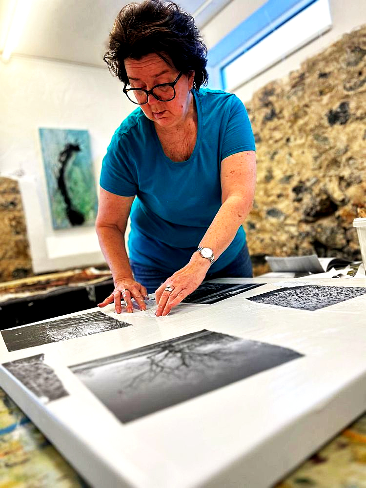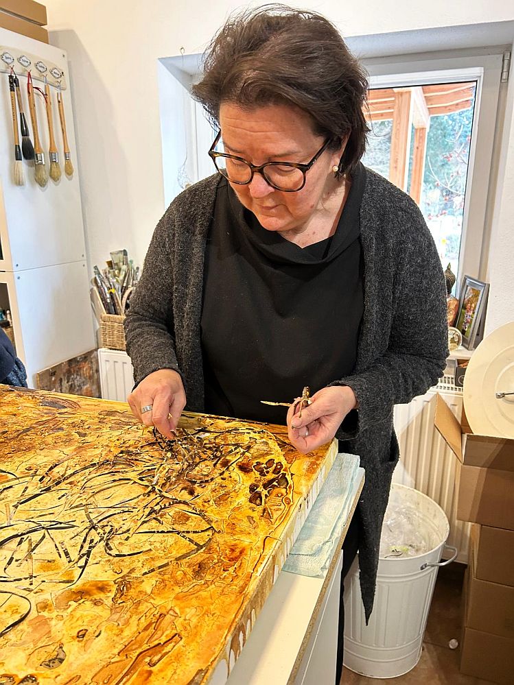Im Moment ist der Status, dass ich mich von dem Zuviel wieder verabschiede. So kann Neues kommen. Das Werk soll als Ganzes wirken, den Betrachter zum Herantreten und Hinschauen animieren, versteckte Impressionen aus dem Buch entdecken.