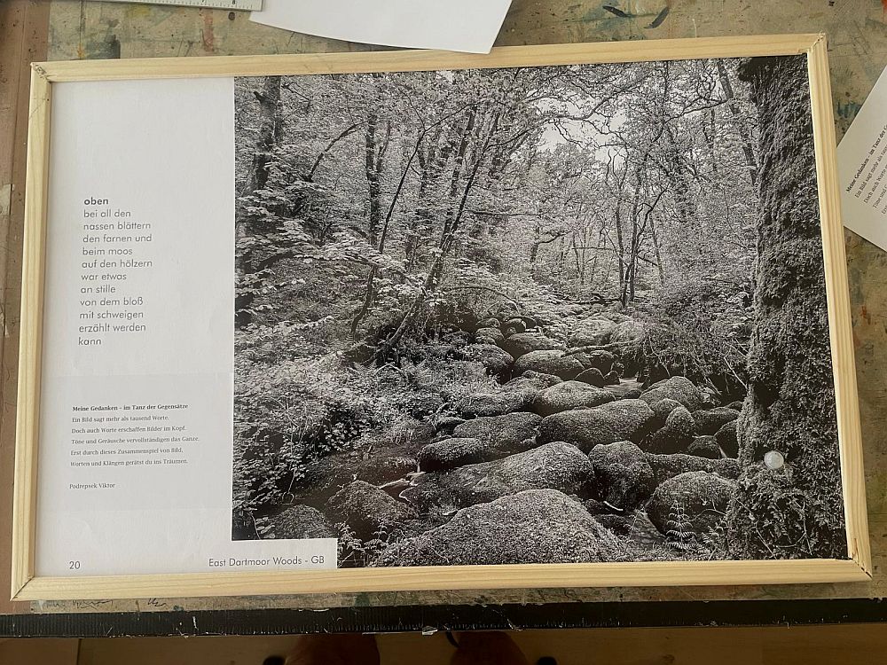 von Martina BrandlDie Wälder von Dartmoor haben es ihm angetan. Bekanntermaßen sagt ein Bild mehr als tausend Worte. Zweifelsohne ist dies so, doch man muss auch ganz genau hinsehen. Und dies hat Podrepsek in mehrerlei Varianten getan. Dies Motiv wurde gezeichnet, gemalt und als Installation verarbeitet. Ohne dabei je das Bild in Farbe zu betrachten…
