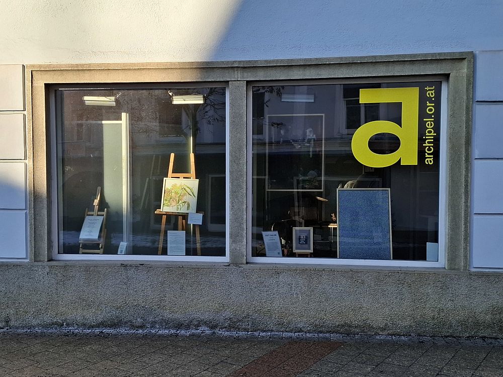 Damit war er eben in beiden Fenstern präsent, die unseren „Zeit.Raum“ zur Bürgergasse hin öffnen. Das Ensemble habe ich eben umgehängt, kompakter montiert, weil nun Monika Lafer wieder mit einer neuen Episode da ist.