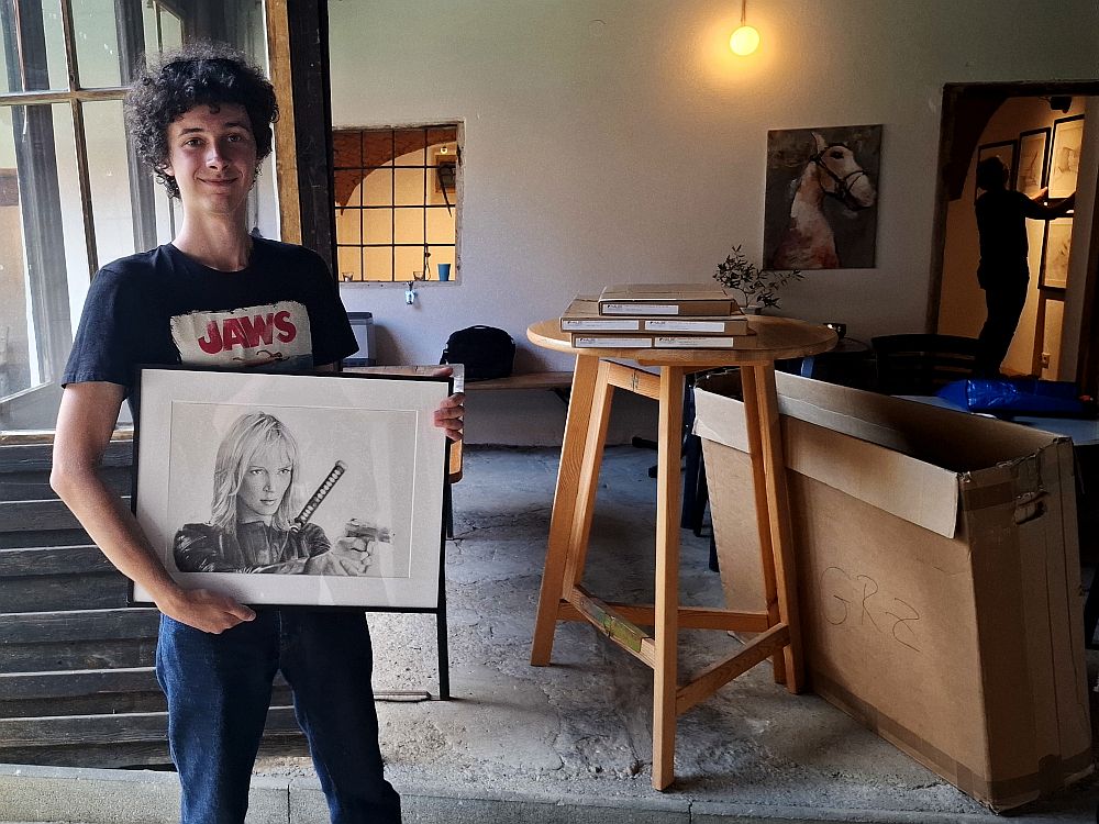 von Martin KruscheDavid Karner hatte drei Arbeiten zur Ausstellung „Tage danach“ mitgebracht. Fotorealistische Zeichnungen. Portraits von Schauspielerin Uma Thurman, Country-Monument Willie Nelson und Musiker Moby. Tierrechts-Aktivist Moby heißt übrigens Richard Melville Hall. Unabhängig davon, ob er selbst da eine Verbindung sieht, verweist das unter anderem auf Herman Melville, den Autor des Romans „Moby Dick“, durch den der obsessive Kapitän Ahab des Walfangschiffes „Pequod“ in die Weltliteratur einging.