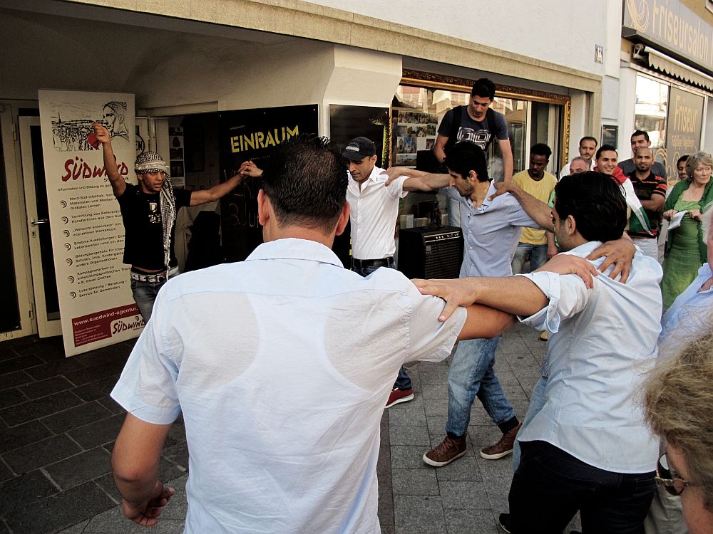 Etwas komplexer der griechische Hasapiko, aber klar geordnet. Die arabische Dabke hab ich ähnlich gesehen, wobei ein paar bemerkenswerte Schritt-Varianten vorkamen. So oder so, es ist allemal ein Stück Körpersprache, die sich über motorisches Lernen im Muskelgedächtnis etablieren kann.