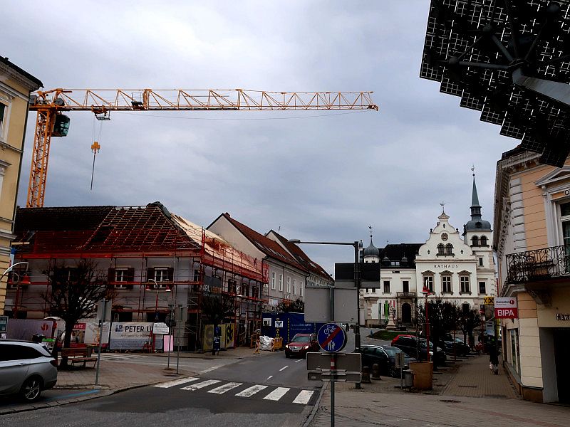von Martin KruscheWas zuerst bloß die Kontinuität im Blick auf einen bestimmten Abschnitt der Stadt gewesen ist, bekam im November 2023 einen neuen Gesamtzusammenhang. Durch meine Recherche zur historischen Situation jener Passage im Gleisdorfer Stadtzentrum kam ich drauf, daß unter meinem Bürofenster heute freie Flächen auf zwei Arten bestehen. Links Privatgrund, rechts öffentlicher Grund, aber beide zusammen der südlichste Abschnitt des Florianiplatzes.