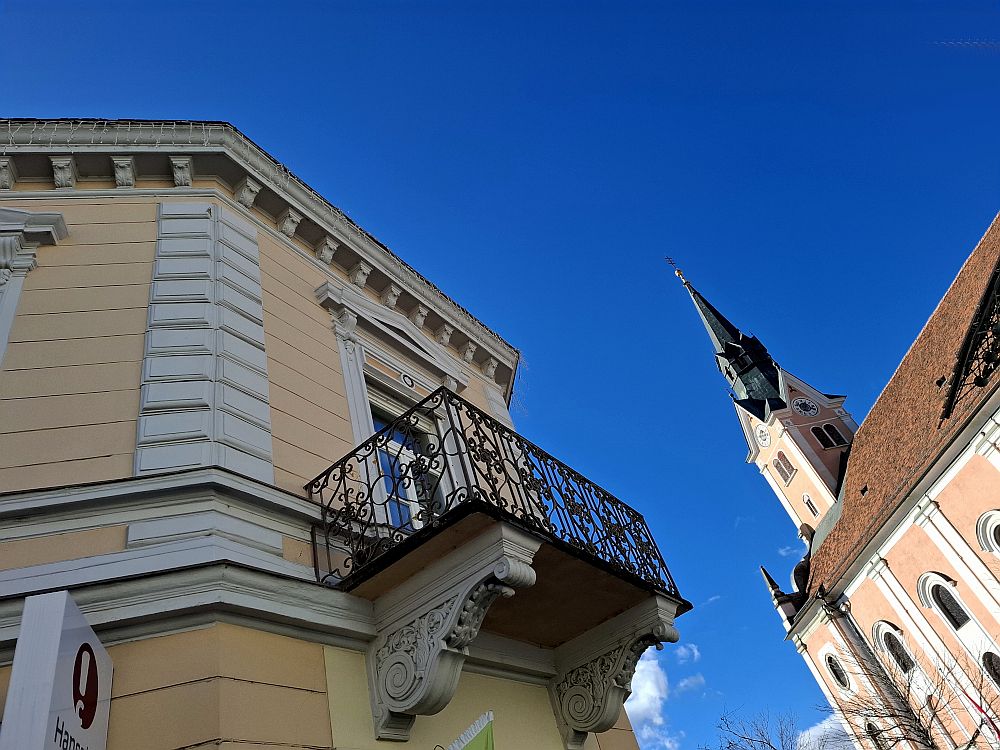 Zugegeben, das ist laienhaft gedacht. Aber da sich dieser Platz entlang einer Durchzugsstraße auftut, ist seine langgezogene Erscheinung mit einem Rundgang ganz gut faßbar. Ich beginne bei der Volksbank, den Parzellen Nummer 1 und 2, gehe zum Rathaus hinauf. Dort ist freilich die südlichste Position des Florianiplatzes den Blicken entzogen. Sie liegt hinter Farben Stranzl und Rathaus: Florianiplatz 10-11.