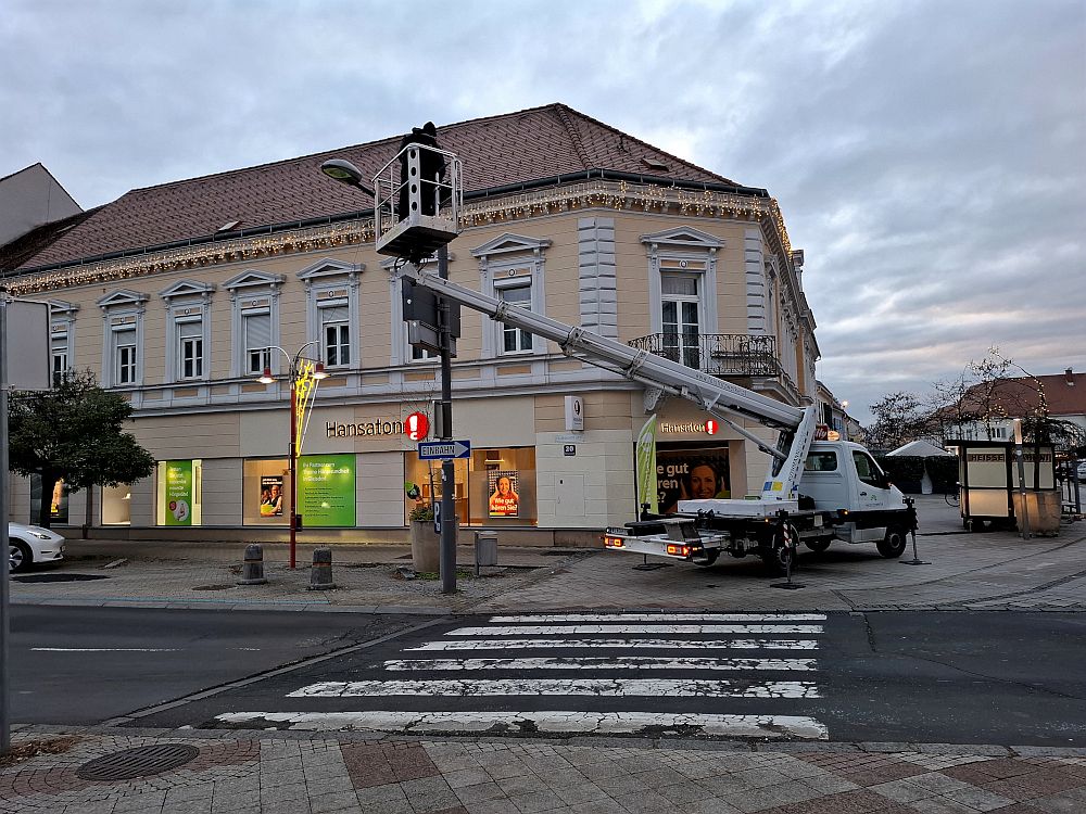 Auf der anderen Straßenseite wieder runter zu Florianiplatz 20. Das Eck gegenüber dem markanten „Solarbaum“, der wohl schon zum Hauptplatz gerechnet wird. Diese Arbeit von Hartmut Skerbisch steht gegenüber der Sparkasse, welche mit einer Kuriosität bedacht wurde, nämlich der Adresse Sparkassenplatz 1. Und das, obwohl es da gar keinen Platz gibt. (Naja, etwas Parkplatz am Straßenrand vor der Buchhandlung Plautz.)