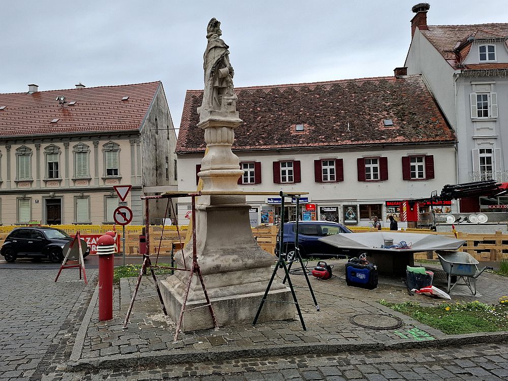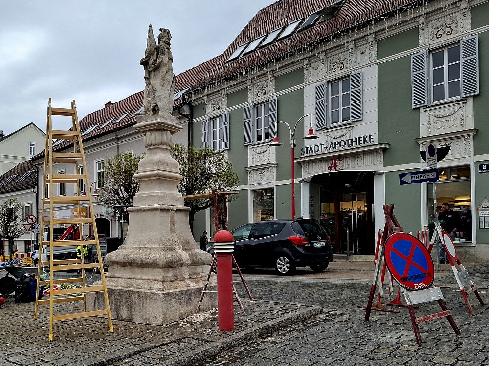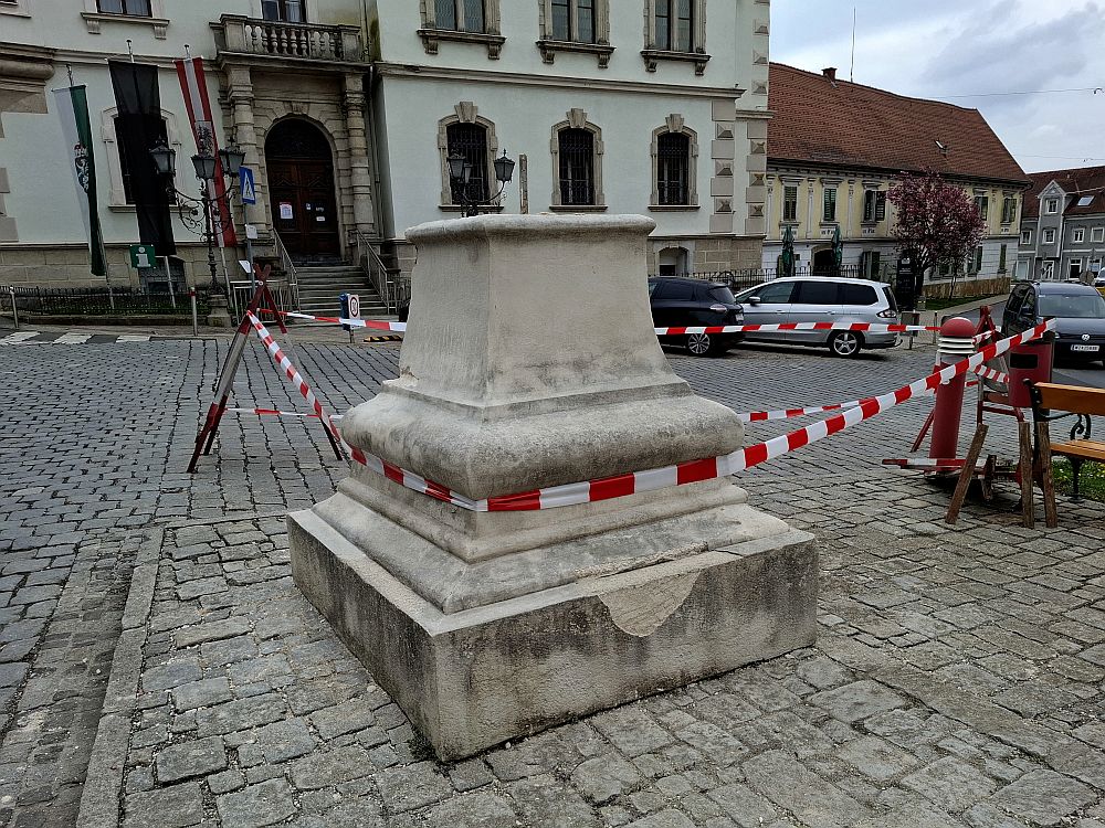 Als Schutzpatron hat Florian ein kontrastreiches Klientel, darunter Bäcker, Bierbrauer, Rauchfangkehrer und Seifensieder, vor allem aber die prominenteste Zuständigkeit: unsere Feuerwehr. Daraus mag man ableiten, daß dieser zentrale Platz vor dem Rathaus ihm sehr passend gewidmet ist. Einstmals leitende Kraft der Verwaltung, politisch der Menschenwürde verpflichtet, als Schutzpatron mit einer Reihe von Zuständigkeiten bedacht, die ein städtisches Blühen fördern. Nun darf man gespannt sein, wo die Säule nach der Umgestaltung des Platzes wieder auftauchen wird.