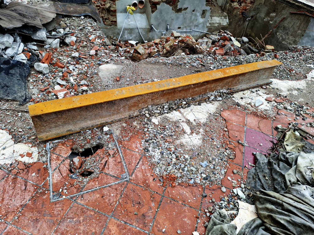 von Martin KruscheWas wäre da an Mannzeit zu veranschlagen, gäbe es dafür nicht schweres Gerät, sondern der Abriß müßte von Hand erledigt werden? Wie einst eine Gruppe von Mahdern früh am Tag mit den Sensen auf die Wiesen hinausging, müßte hier ein Trupp von Bauarbeitern mit den Krampen loslegen, mit Schaufeln den Schutt beiseiteschaffen.