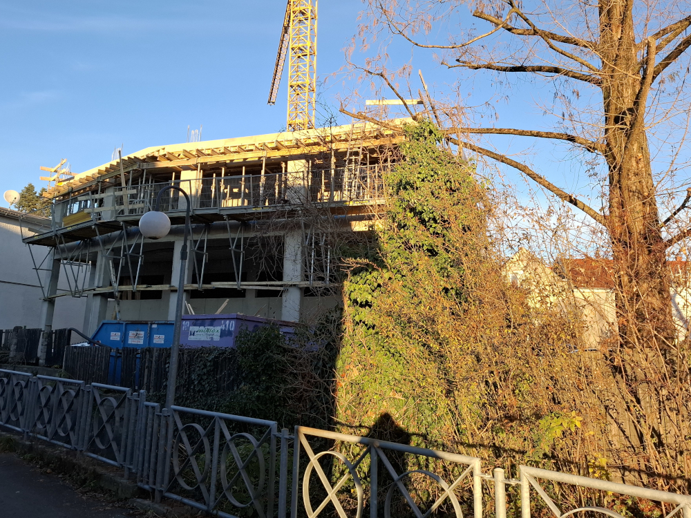 von Martin KruscheEben erst war da diese große Baugrube, dann stand die Hütte sehr ebenerdig da. Ich habe bestaunt, wie rundum so allerhand Elemente angebaut wurden, plötzlich war da ein kompaktes Ensemble mit zwei Stockwerken auf dem Erdgeschoß.