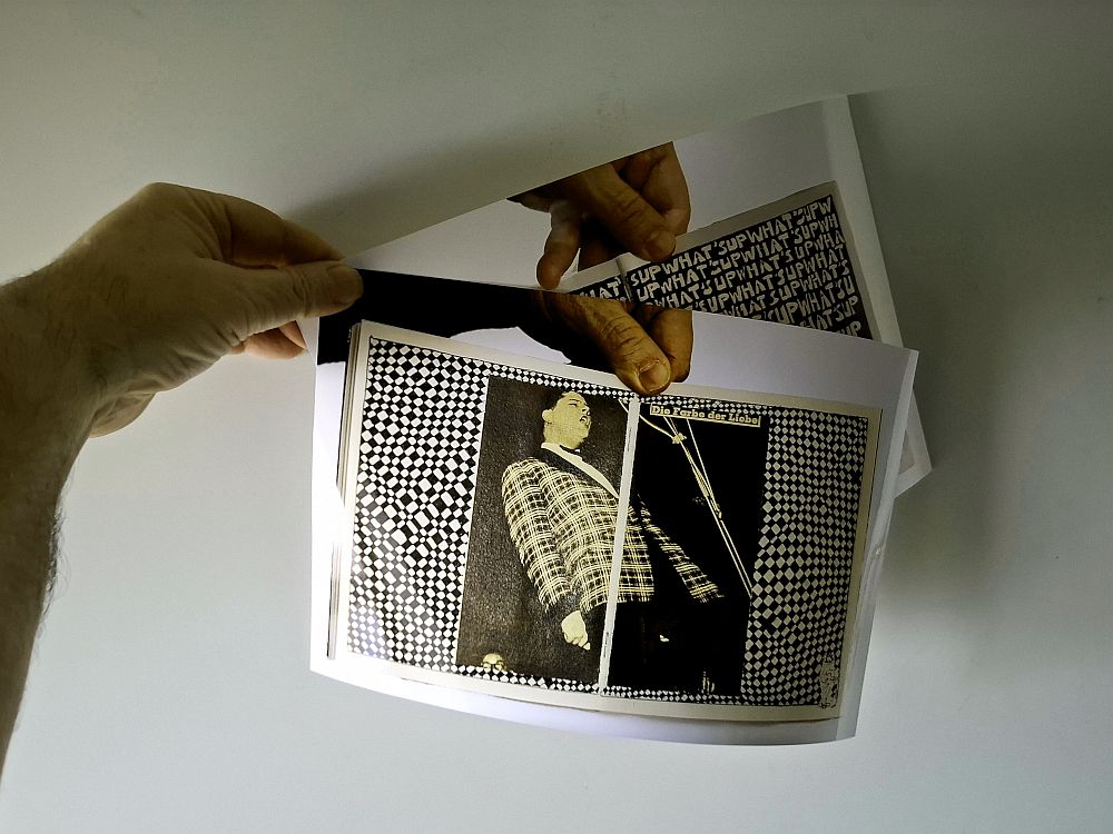 Also werden im Zeit.Raum-Fenster zwei Fotografien gezeigt, die auf diese Serie von Rubey’schen Look Books verweisen. Die zwei Fotos stammen von Richard Mayr, während Sie hier gewissermaßen den „Bildhalter zweiter Ordnung“ sehen: Jemand hält die Mayr-Fotos, auf denen Rubeys Hand zu sehen ist, von der die Look Books gehalten werden. (Fortsetzung folgt!)