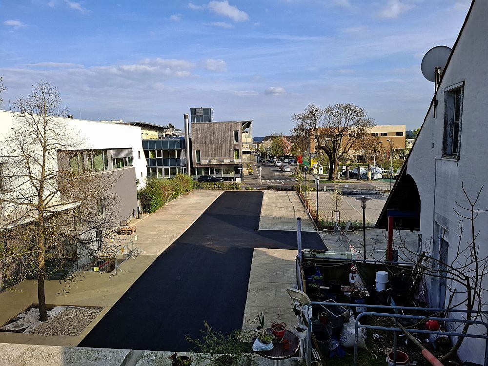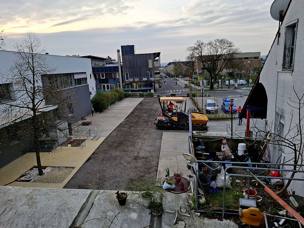 Aber das Verlegen von Leitungen hatte sehr markante Folgen. Es war immerhin recht interessant zu sehen, wie der Boden bereitet werden muß, damit sich belastbarer Asphalt drauf legen läßt, denn diese Fläche ist ein Parkplatz.