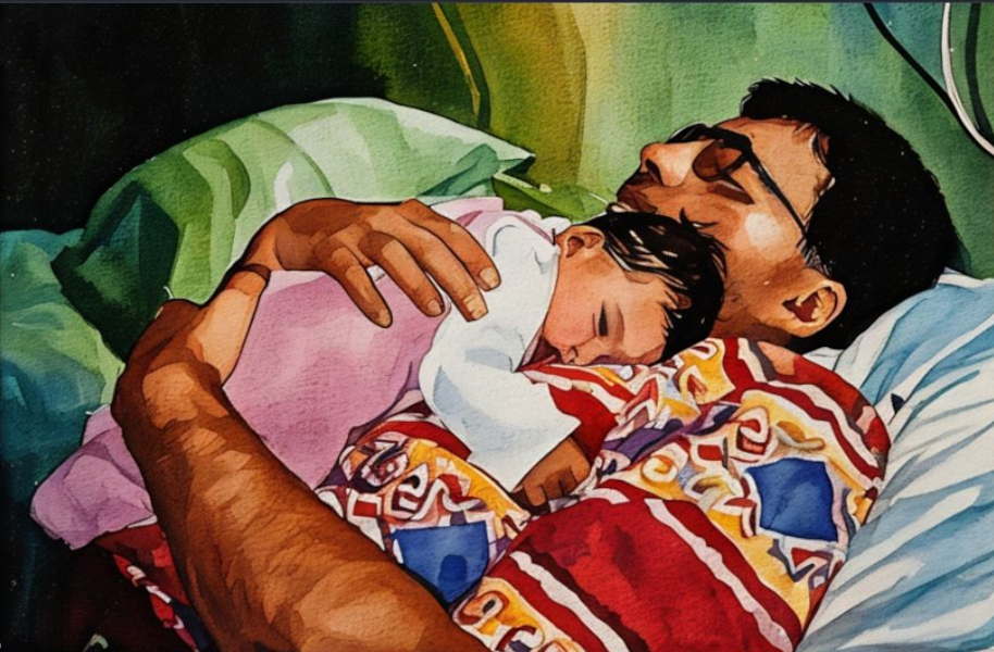Das mochte ich nun exemplarisch durchspielen. Niemand kennt meinen Sohn länger als ich, denn er lag im Mutterleib ungünstig und mußte per Kaiserschnitt geholt werden. Demnach verbrachten wir seine allerersten Stunden auf dieser Welt gemeinsam. Davon ist eine Fotografie erhalten. Die hab ich als Ausgangspunkt genommen, um zwei Wege zu gehen.