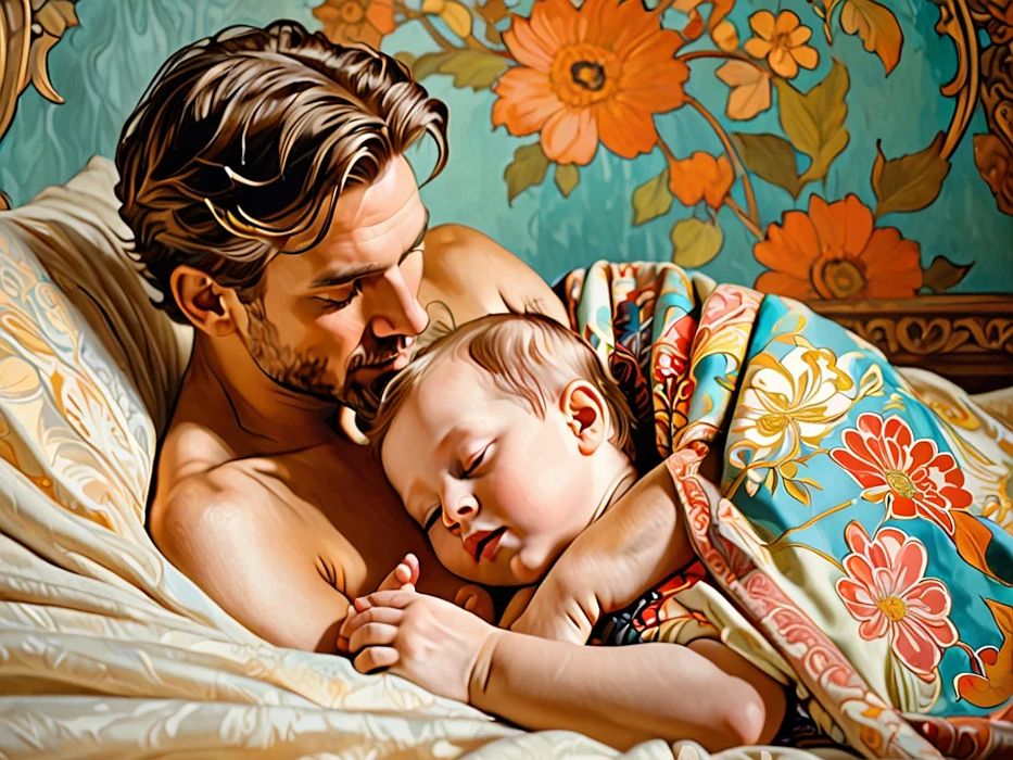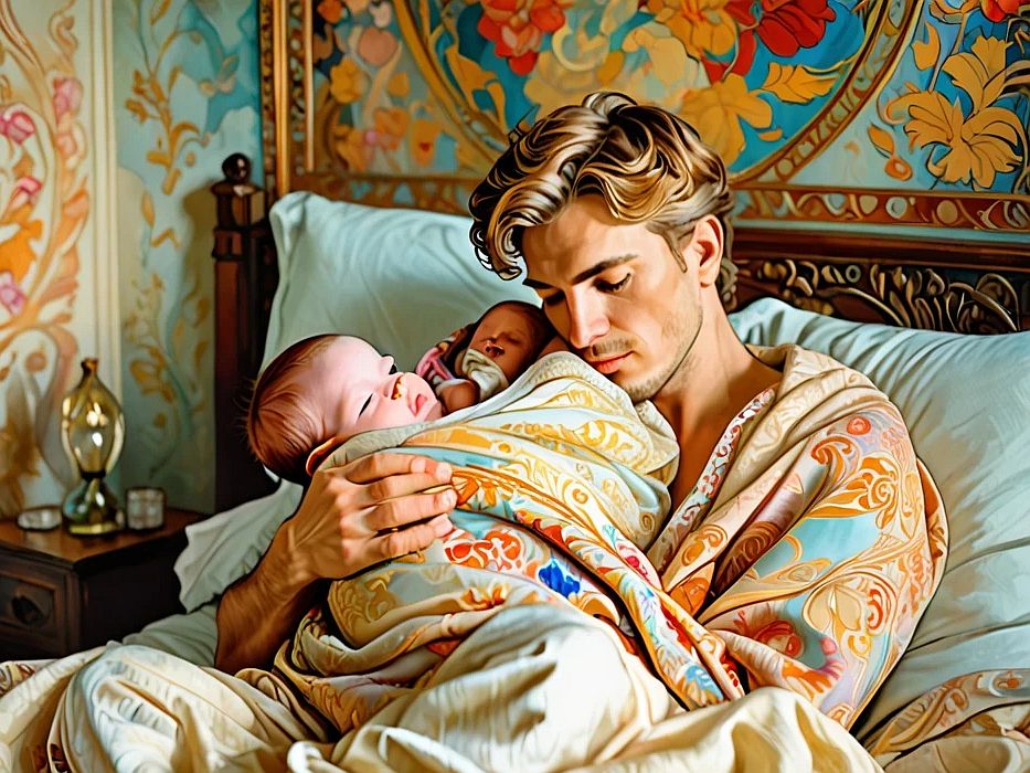 Ich ließ a) eine KI das Bild bloß stilistisch umdeuten. Ich ließ ihr andrerseits b) freie Hand, dieses Motiv auf verschiedene Arten zu generieren. Im Variantenbereich b) findet sich unter anderem das Klischee jenes Schönlings, der vermutlich Barbie geheiratet hat. auf daß die beiden der Welt makellos prächtige Kinder bescherten.