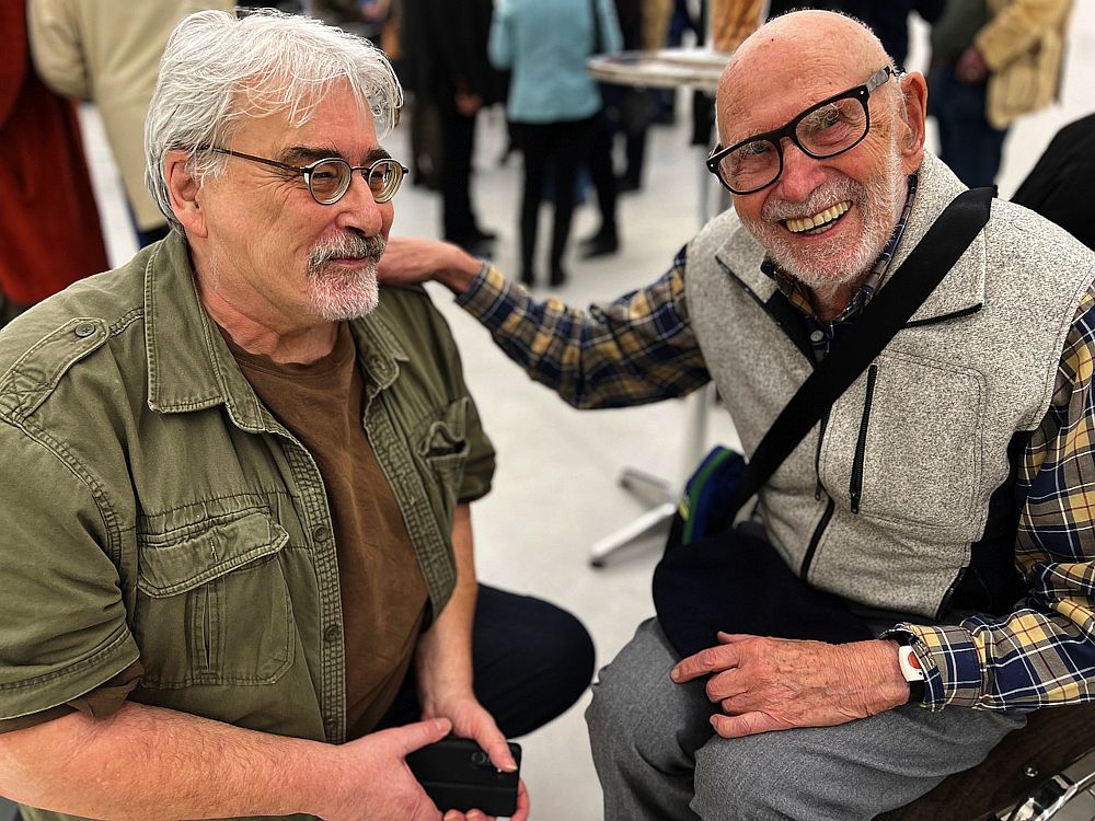 Ich hatte bei der Vernissage die Gelegenheit, in einem ruhigeren Winkel ein sehr ausführliches Gespräch mit einem der früheren Weggefährten von Hannes Schwarz zu führen. Maler Gustav Zankl, heute 97 Jahre alt, war ebenfalls ein Zögling des Nazi-Regimes. Er hatte sich individuell aus diesem ideologische Käfig befreien müssen, was auch in seinem künstlerischen Weg Entsprechungen gefunden hat.
