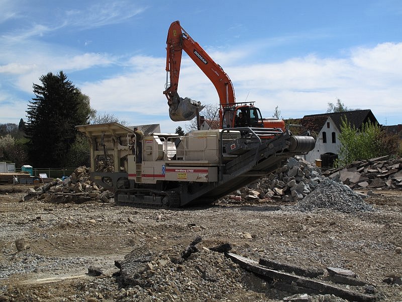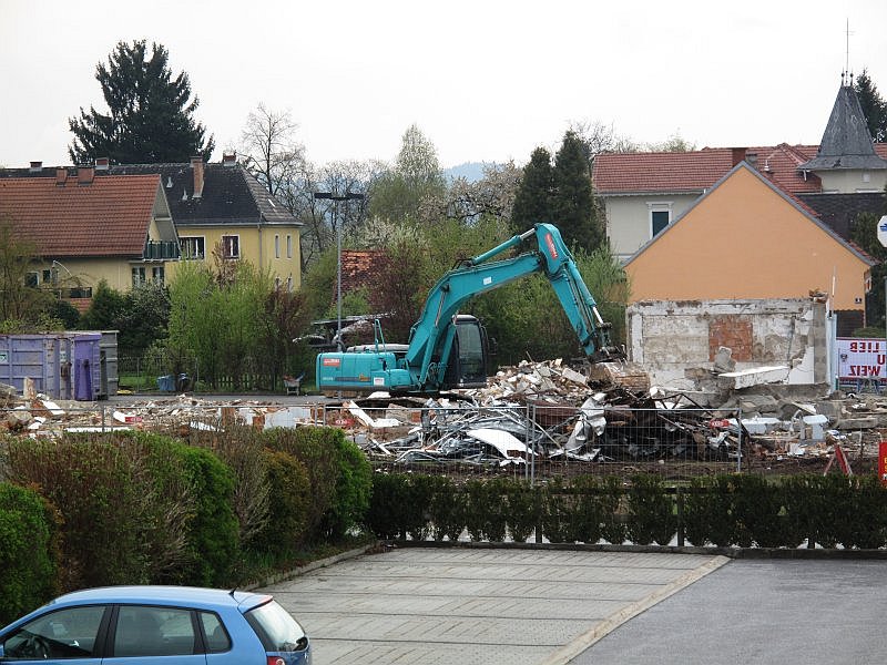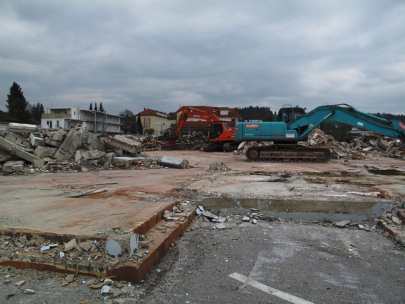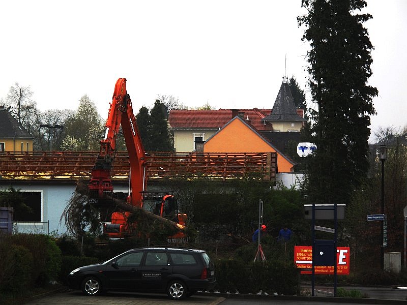 Die Halle wich im April 2012 einem großen Bauprojekt, dem es umfangreicher Wettbewerb vorangegangen war. Als erstes fielen die Bäume, dann die Hütte. Schließlich wurde der Bauschutt auf dem Terrain zerkleinert und abtransportiert. (Bilder zum Vergrößern anklicken!)