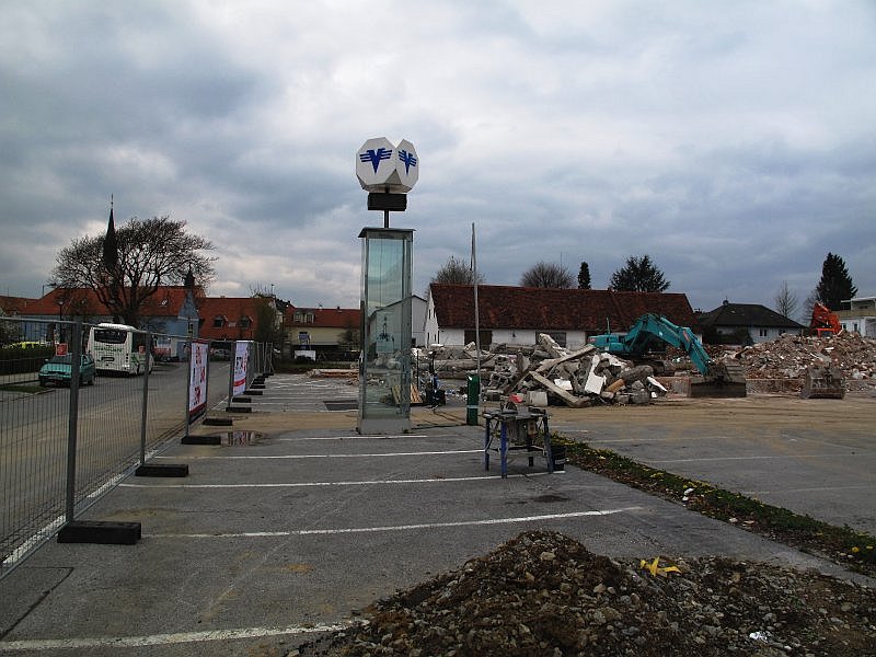 von Martin KruscheAuf dem Grundstück am Eck, wo die Rathausgasse beginnt, stand eine langgestreckte Halle, in der ursprünglich ein Baumarkt eingerichtet war. Als der verschwand, wurde per Leuchtreklame eine lokale Bank als Besitzerin erkennbar.