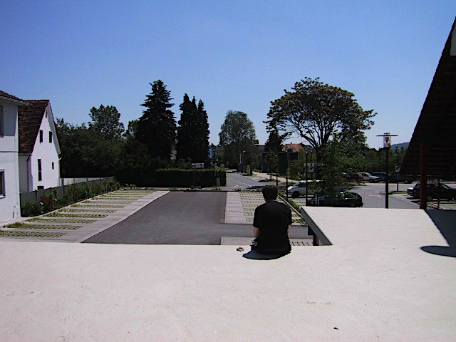 Was ursprünglich ein hölzernes Flugdach war, wurde zu einer betonierten Terrasse. Das bewegte Nachbarn, sich darauf einen Balkon einzurichten. Eine Galerie, vor der ein lebhaftes Programm stattfindet. Blaskapellenaufmärsche, Feuerwehreinsätze, Festivalgäste und Nachtschwärmer, stets wieder Bauarbeiten jeglicher Art.